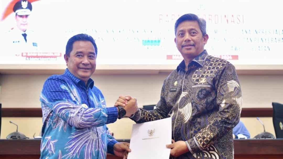 BERITA45.COM, MAKASSAR - Penjabat Gubernur Sulsel, Bahtiar Baharuddin, menyerahkan SK Penjabat Sekretaris Daerah Provinsi (Sekprov) Sulsel kepada Andi Muhammad Arsjad.